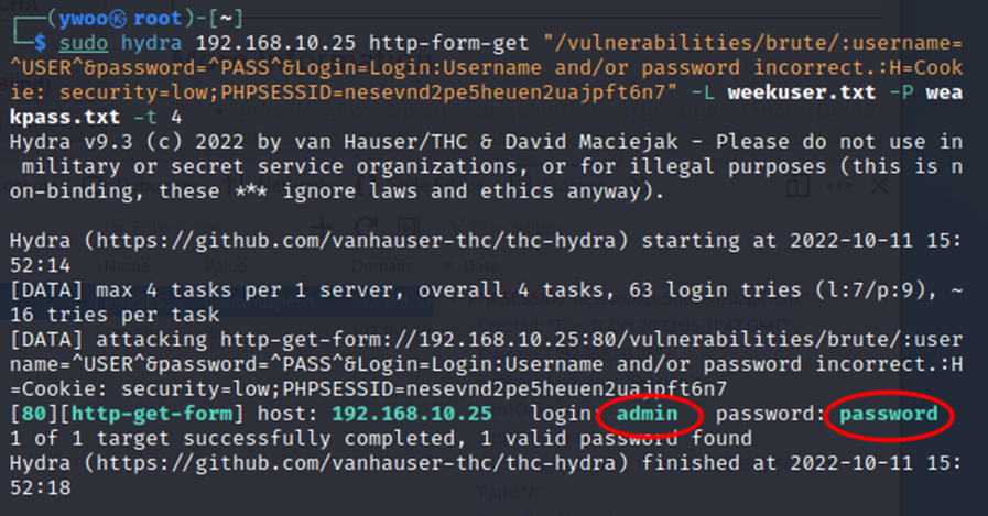 3. Kali -> Brute Force 공격 후 계정 정보 탈취