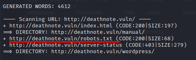 dirb http://deathnote.vuln/![]() |