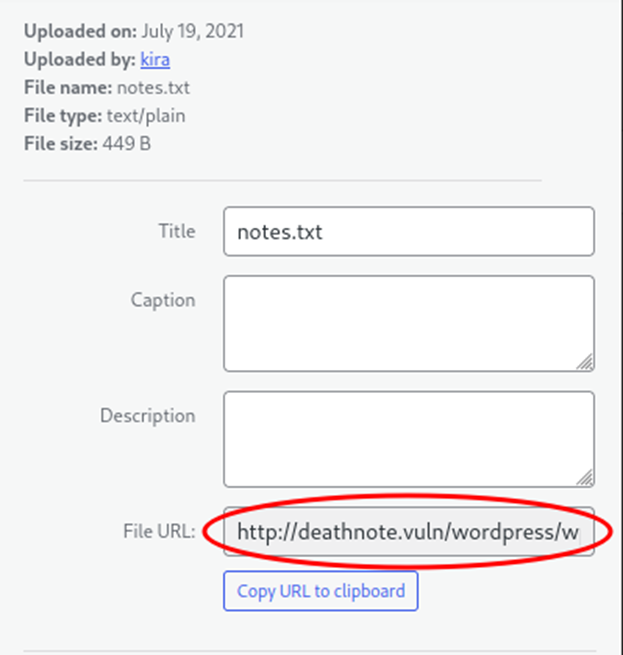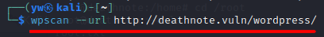 | wpscan --url http://deathnote.vuln/wordpress/ |