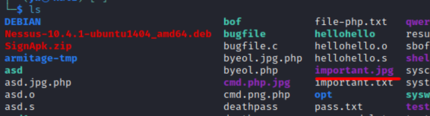 | cp important.jpg important.txt 그래서 이미지 파일을 확장자만 바꿔서 텍스트파일로 변환해봤다. |