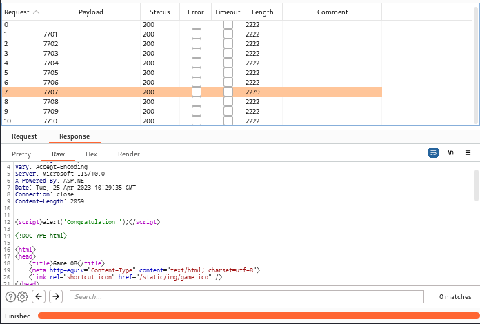클릭해보니 다른 비밀번호와는 다르게 코드에서 Congratulation! 문구를 출력하게하는 코딩이 되어있는 것으로 보아 7707이 비밀번호라는 것을 직감했다.