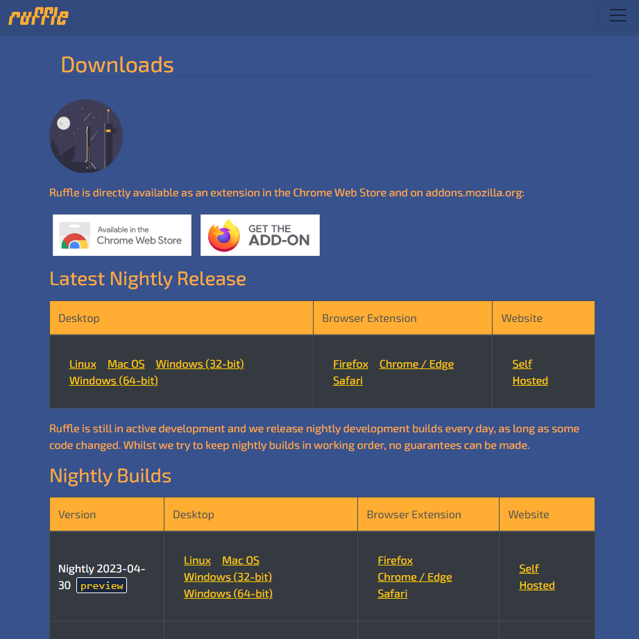 플러그인 지원에 대한 해결방법을 찾다가 Ruffle이라는 확장프로그램을 발견했다. 요즘 대부분의 웹에서는 플래시로 만들어진 컨텐츠가 동작하는 것은 ruffle을 이용한 사이트라고 하던데 Adobe Flash를 대체하기에는 충분해보였다.