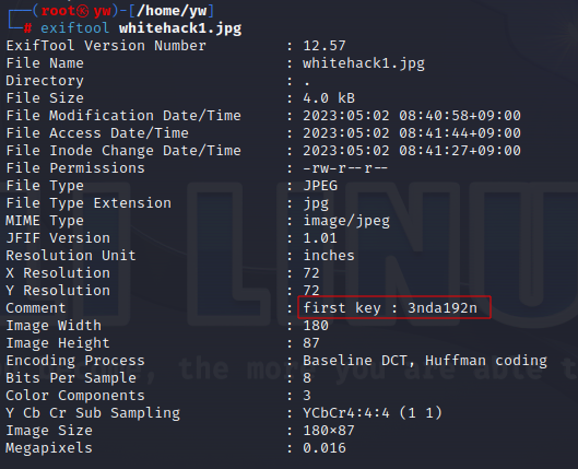 이미지 안에 무언가가 숨겨져 있을 듯해서 KALI로 이미지를 옮겨 exiftool로 이미지 정보를 조회했다.