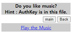 개발자도구에는 이렇다할 힌트는 없었고, Do you like music? AuthKey is in this file.이라고 하니까 Play the Music 버튼을 눌러봐야겠다.