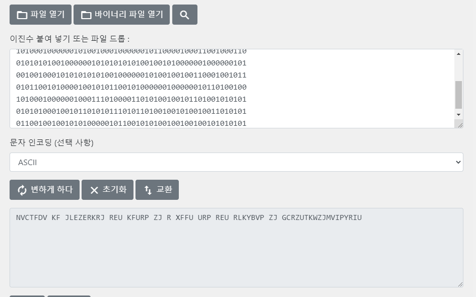 이진수를 텍스트로 변환 후, NVCTFDV KF JLEZERKRJ REU KFURP ZJ R XFFU URP REU RLKYBVP ZJ GCRZUTKWZJMVIPYRIU