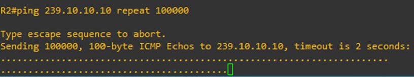 | ping 239.10.10.10 repeat 10000 | 멀티캐스트 주소로 핑 때려보기 마지막 숫자는 몇회 송신할건지 임의의 숫자 |