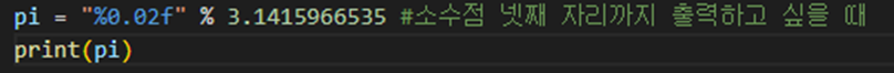 3.14159에서 반올림하여 6으로 표기하고 소수점 넷째 자리까지 출력됨.