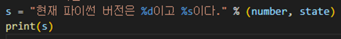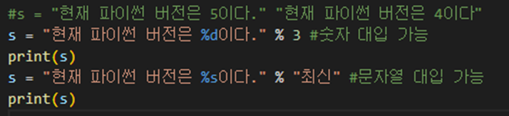 %s 포맷 코드이나 어떤 형태의 값으로 변환 대입이 가능하다