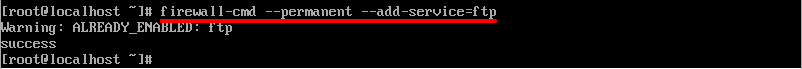 'firewall-cmd --permanent --add-service=ftp' 명령어를 이용해서 방화벽 세팅을 해준다. firewall-cmd는 firewall command이며 ftp라는 서비스를 영원히(permanent) 추가(add)하겠다' 라는 뜻이다. 나는 이미 구축되어있던 머신으로 실행해서 이미 ftp서비스 실행이 설정되어있다고 출력되지만 처음 명령어를 입력한다고 하더라도 딱히 다른 문구가 출력되진 않고, 명령어가 정상적으로 실행된다면 'success'라는 문구가 뜬다.