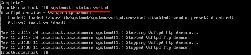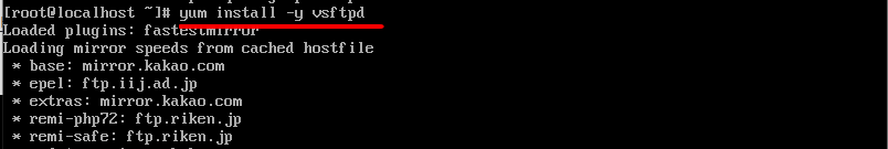 이번엔 'yum install'명령어를 사용하여 ftp를 설치해본다. 위에서 언급했던 것 처럼 중간중간 나오는 확인 문구들을 모두 'yes'처리하기 위해서 'yum install -y'까지 입력하였고 vsftpd는 ftp서비스를 의미한다. 참고로 vsftpd는 Very Secured File Transfer Daemon의 약자이다.