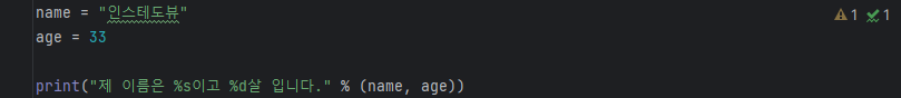 하지만 코드가 조금 번거로운 감이 있기 때문에 이런 경우에 문자열 포맷팅을 한다.