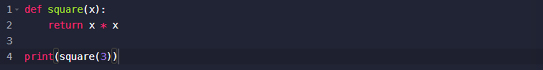 캡쳐와 같이 square 파라미터에 3을 지정해뒀다. 그러면 x에 정수 3이 올라가고 3은 square 함수 내에서만 사용가능한 로컬변수인 것이다.