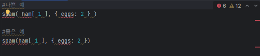 일반 코드와 같은 줄에 코멘트를 쓸 경우, 코멘트 앞에 띄어쓰기 최소 두 개를 하는 것이 좋다.