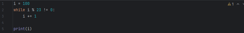 while 반복문을 사용하여 100 이상의 자연수 중 가장 적은 23의 배수를 출력하자.