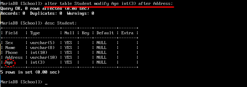 나는 Age필드를 Address 필드 뒤로 보내봤다.