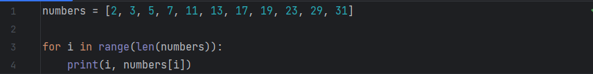 for문과 range 함수를 사용하여, numbers의 인덱스와 원소를 출력하자.