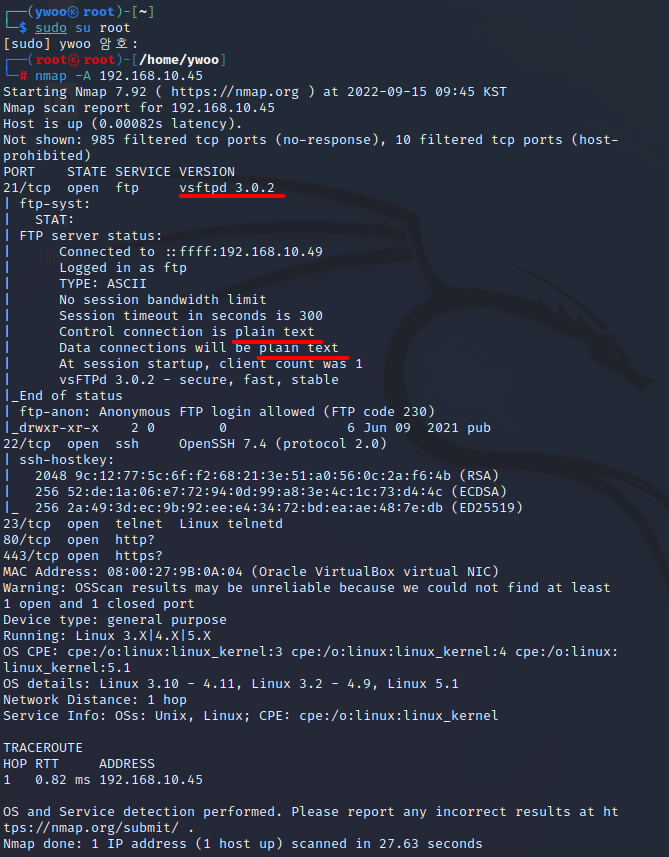 1) vsftpd는 Very Secure FTP임에도 불구하고, 시스템 계정이 그대로 노출되는 취약점이 있다.