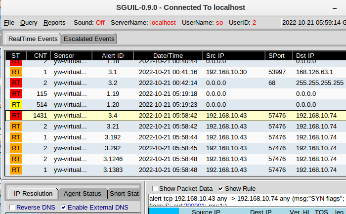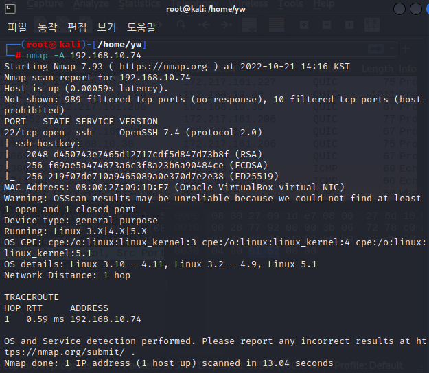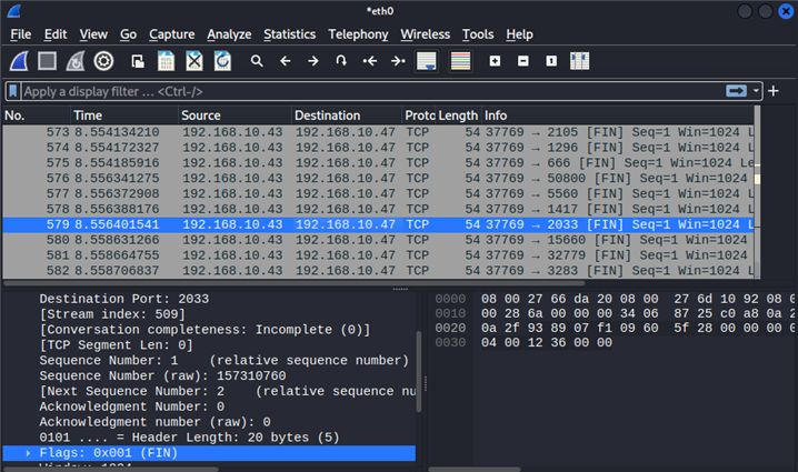 Attacker에서 Nmap을 통해 Victim을 스캐닝 및 취약점 분석을 실시하고 NIDS 정책에 TCP Header에 SYN, FIN flags를 탐지하는 룰을 작성하고 이에 대해 탐지가 가능하도록 설정하고 Wireshark로 패킷을 캡처하여 내용을 확인하시오.