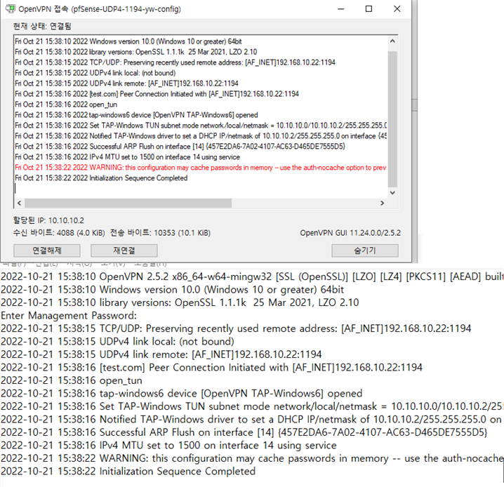OSSEC(HIDS)를 통해 Windows, Linux 머신을 연결하고 연결 상태를 확인하고 openVPN을 통해 remote access VPN 연결을 완료하시오.