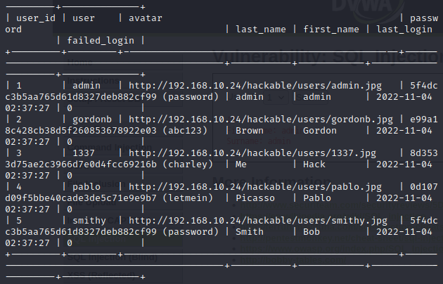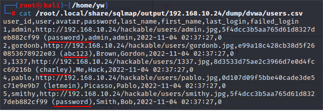 Attack(Kali) → Victim(DVWA) : SQL Injection을 통해 Password를 추출하고 대응방안에 대해 서술