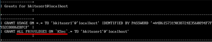 - hkituser1: KSec DB에 모든 권한(로컬호스트)
