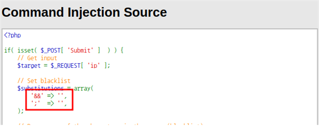 현재 ‘&&’, ‘;’만 블랙리스트 등록이 되어 있기 때문에 기호들을 조금 더 다양화 및 세분화 시켜 ‘&’, ‘$’, ‘(’ 등을 추가하여 보안레벨을 상향한다.