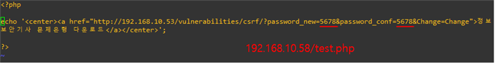 이런 공격은 공격자가 악성URL을 생성하여 희생자의 비밀번호를 5678로 변경하는 요청이 전송된다. 즉 링크를 클릭하게 되면 추가적인 사용자 인증 수단이 없기 때문에 희생자가 이 악성 링크를 클릭해서 실제로 비밀번호를 변경하려는 것인지, 원치 않게 변경되는 것인지 서버 측에서는 구분이 불가하다. 그래서 ㅂ밀번호 변경 시, 간단한 질문, 본인인증(핸드폰, pass 등)과 같은 사용자 인증수단을 추가하는 것이 대응방안으로 올바르다.